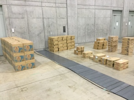 グランメッセ熊本での食糧納品風景(7/10エフコープ生協 加藤好美さん撮影)