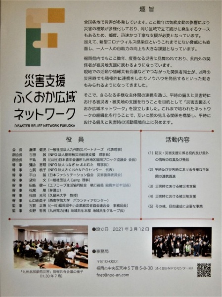 添付は、災害支援ふくおか広域ネットワークの紹介情報です。