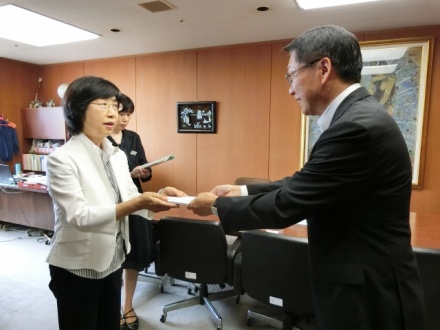福岡県人づくり・県民生活部部長の重松典子様を訪問し、日本生活協同組合連合会からのお見舞金をお届けいたしました。