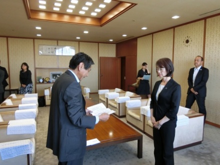 東原会長から、全国の生協組合員から寄せられた義援金1億7千6百万円の目録が大曲副知事に手渡されました。東原会長は、お見舞いの言葉のうえ、「組合員であるなしを問わず地域に向けて、県労働者共済生協(全労災)・エフコープ・グリーンコープ等の組合員や職員による支援活動を今後も続けるという力強いお約束と、全国の組合員一人ひとりからの志である義援金をお預かりしたので謹んでお届けしたい、ともにがんばりましょう」との挨拶を述べ、大曲副知事からは、「北部豪雨では犠牲になった方も多く、家屋や農地・山林など、甚大な被害となりました。復旧は道半ば、今後も避難者や現地の復興に努力していきます。今回の多額の義援金はありがたい。今後も長く支援活動をお願いしたい」とのお話がありました。堤副会長からは、自身のボランティア活動の経験談やエフコープの支援状況の報告がありました。