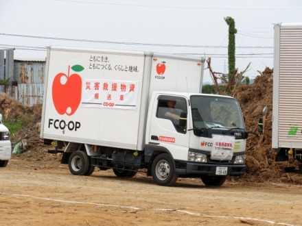 平成30年度福岡県総合防災訓練が、6月3日(日)古賀市筵内にて開催されました。福岡県生協連は、エフコープ生協とグリーンコープ生協ふくおかの協力を得て、配送トラック2台4名、参加いただきました。福岡県生協連が受け持った訓練は、「自主防災組織等による活動」の中の「食料供給訓練」(炊き出し)に参加しました。訓練概要は、炊出しを通じて被災者に対して食料、飲料水の供給等を行う救援物資を移送する訓練でした。当日は、晴天に恵まれ、福岡県知事も参加。陸海空自衛隊、警察、各官庁、消防局、電気・ガス・医療等ライフラン関連事業者等 約90の団体 約1,300人の参加がありました。イベント展示用テントでは発災時の試食等もあり多数の一般来場者がありました。今後も地域防災訓練に参加し、災害への備えをしっかりしていきたいと思います。