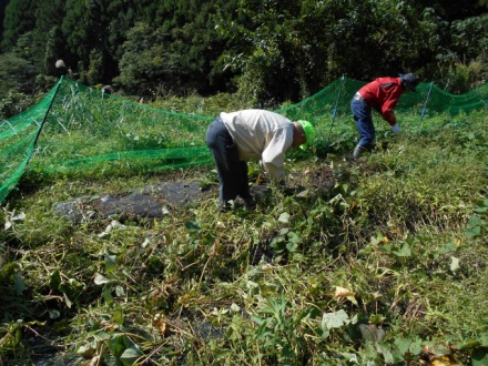 サツマイモ畑の雑草の草刈り